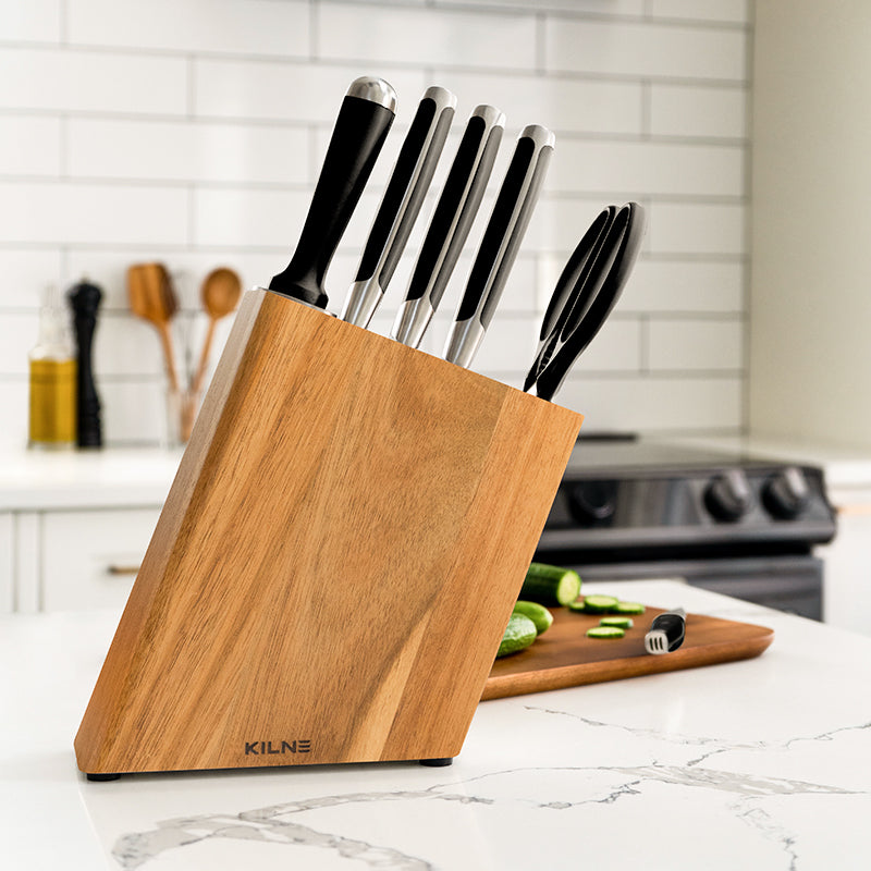 Knives and block look amazing on my counter! They are super sharp so need to be careful using th first little while. They are excellent quality. Would recommend investing in these.